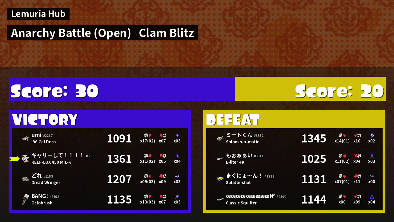 | Mode | Clam Blitz - Anarchy Battle (Open) | ||