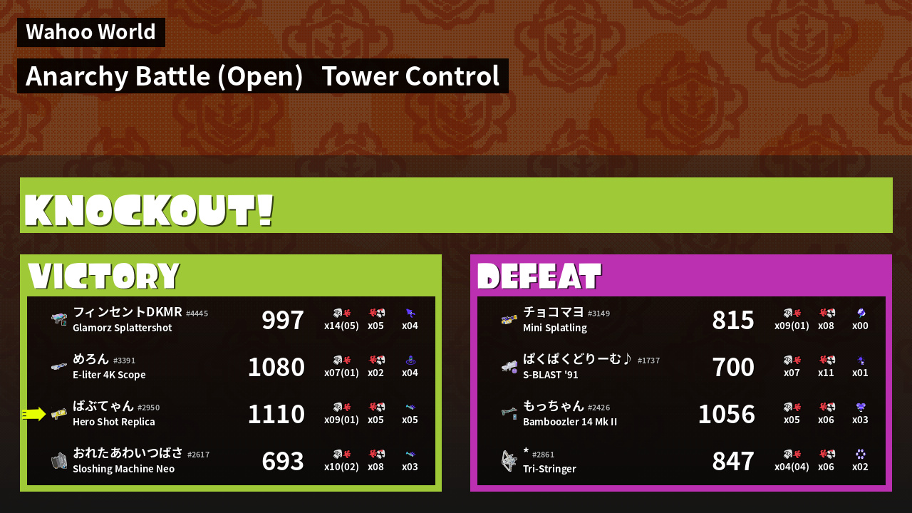 | Mode | Tower Control - Anarchy Battle (Open) | ||