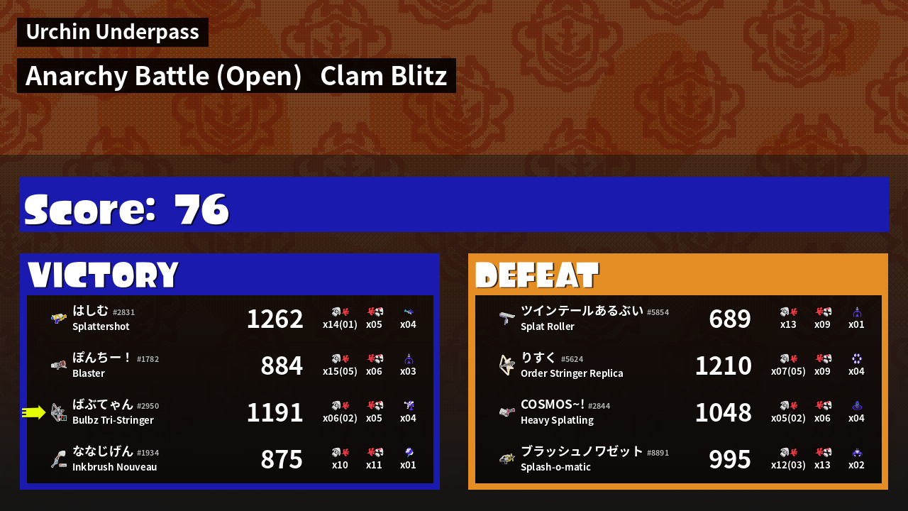 | Mode | Clam Blitz - Anarchy Battle (Open) | ||