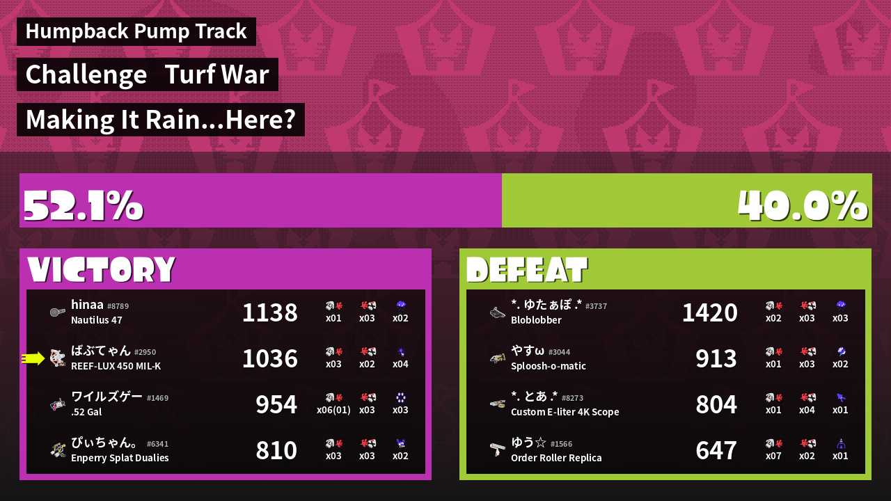 | Mode | Turf War - Challenge | ||