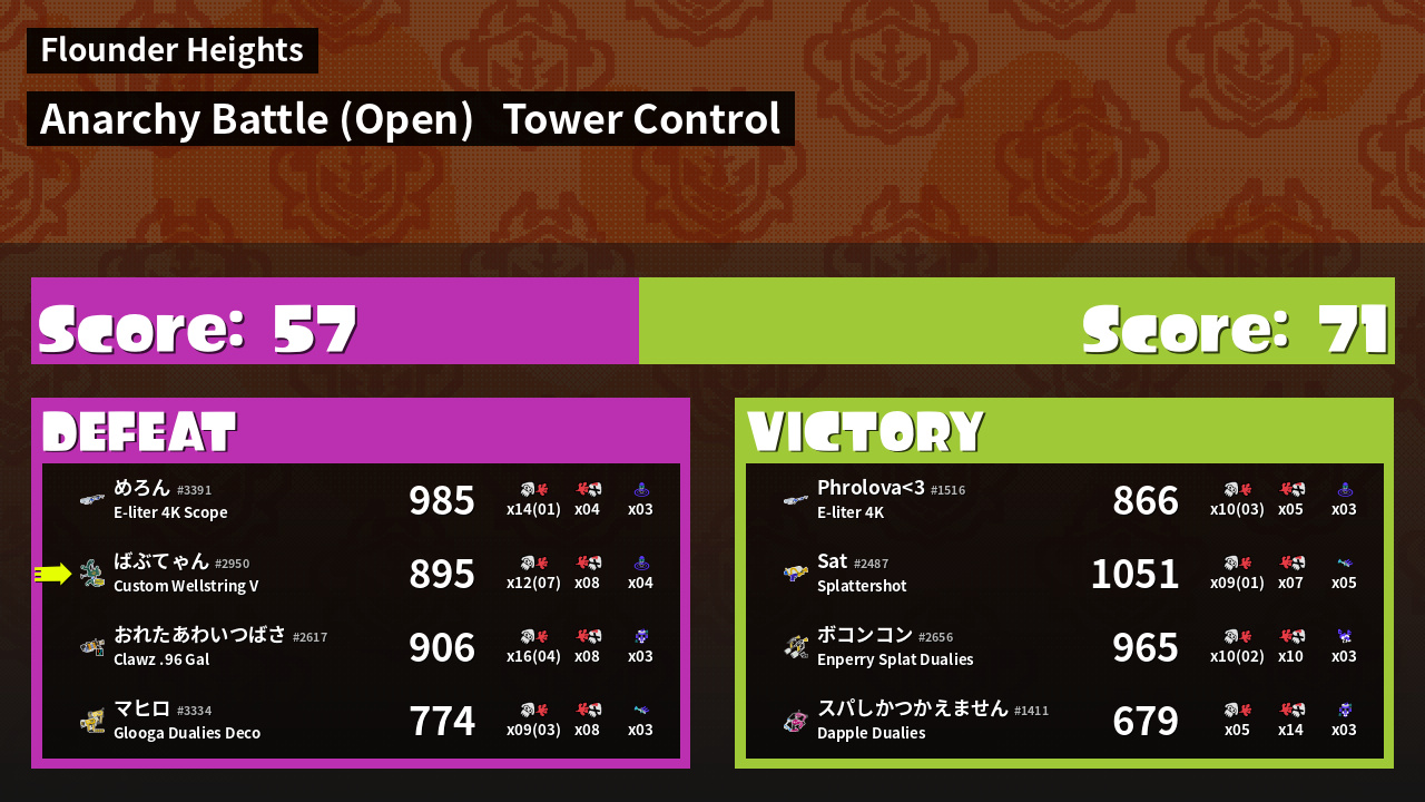 | Mode | Tower Control - Anarchy Battle (Open) | ||