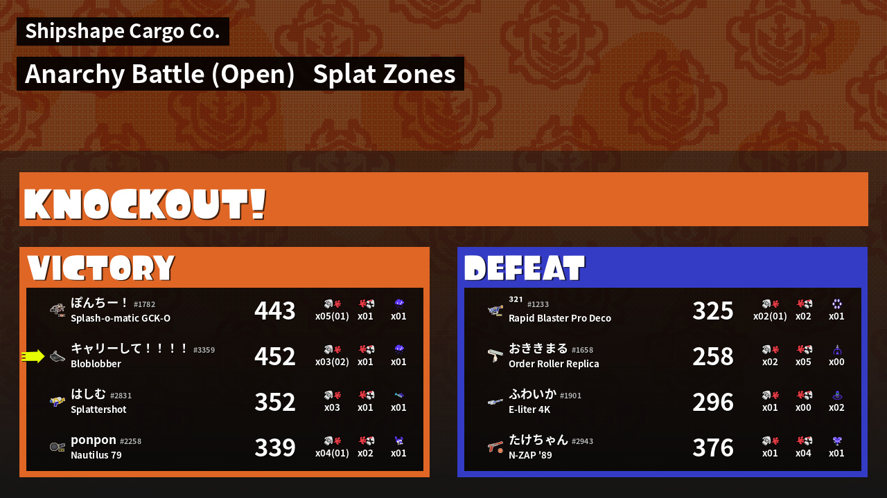 | Mode | Splat Zones - Anarchy Battle (Open) | ||
