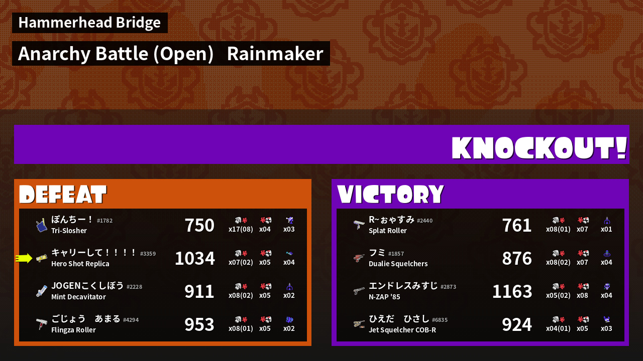 | Mode | Rainmaker - Anarchy Battle (Open) | ||