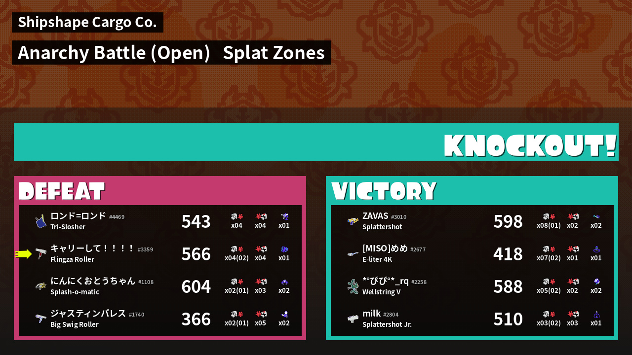 | Mode | Splat Zones - Anarchy Battle (Open) | ||