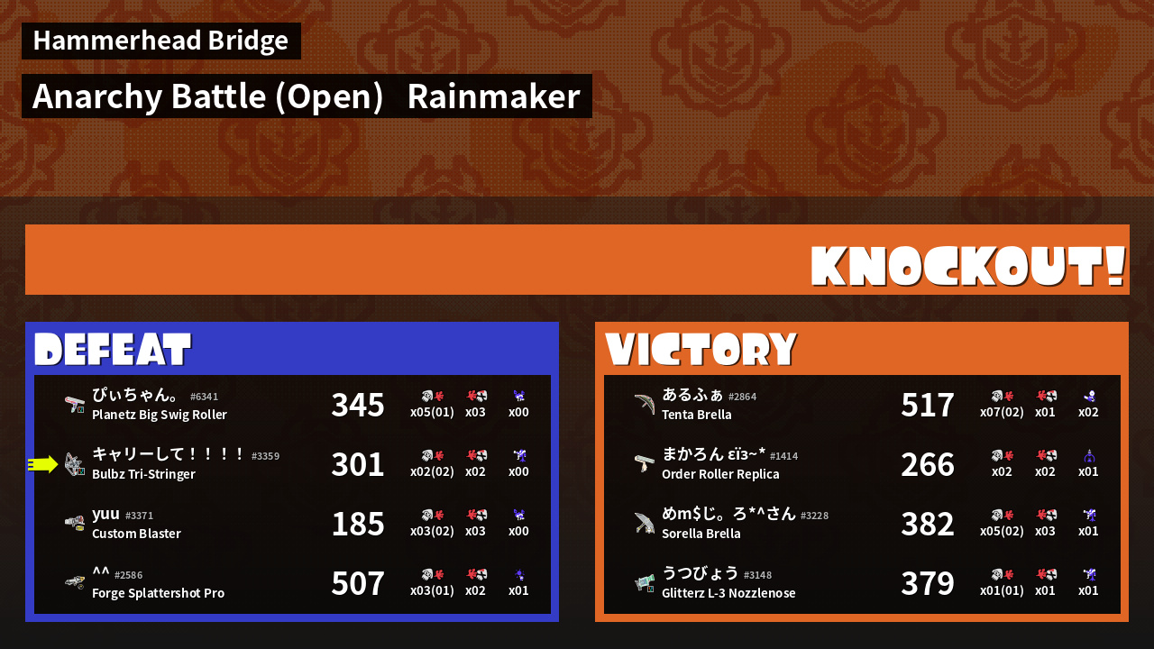 | Mode | Rainmaker - Anarchy Battle (Open) | ||