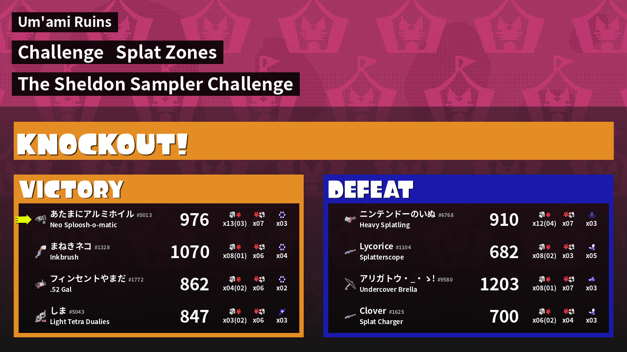 Challenge | The Sheldon Sampler Challenge Make the most of random weapons! | ||