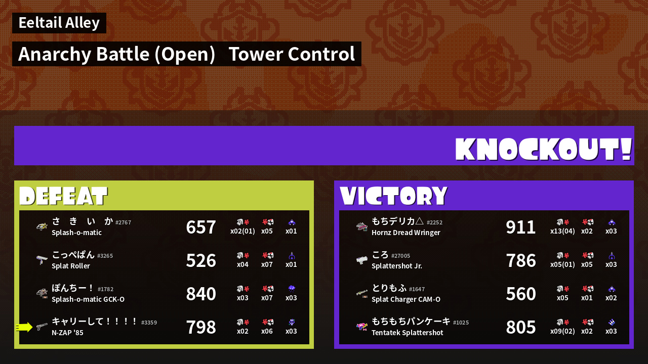 | Mode | Tower Control - Anarchy Battle (Open) | ||