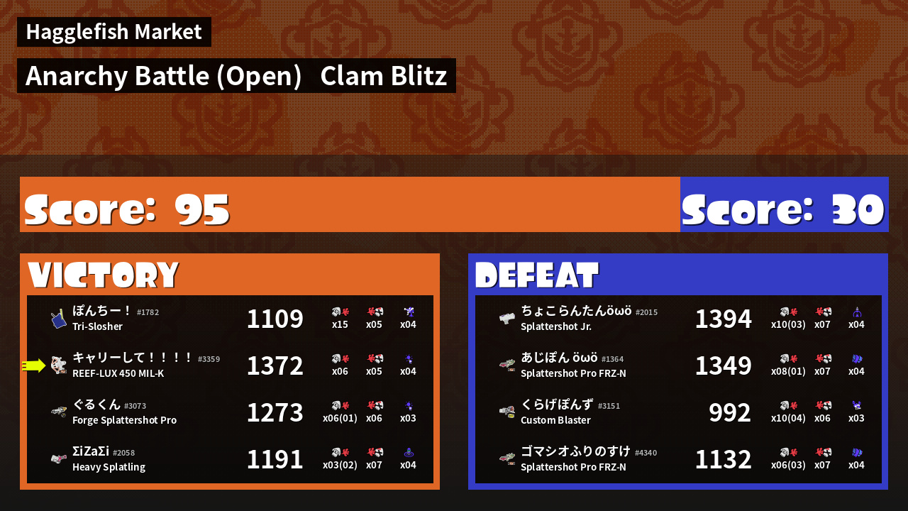 | Mode | Clam Blitz - Anarchy Battle (Open) | ||