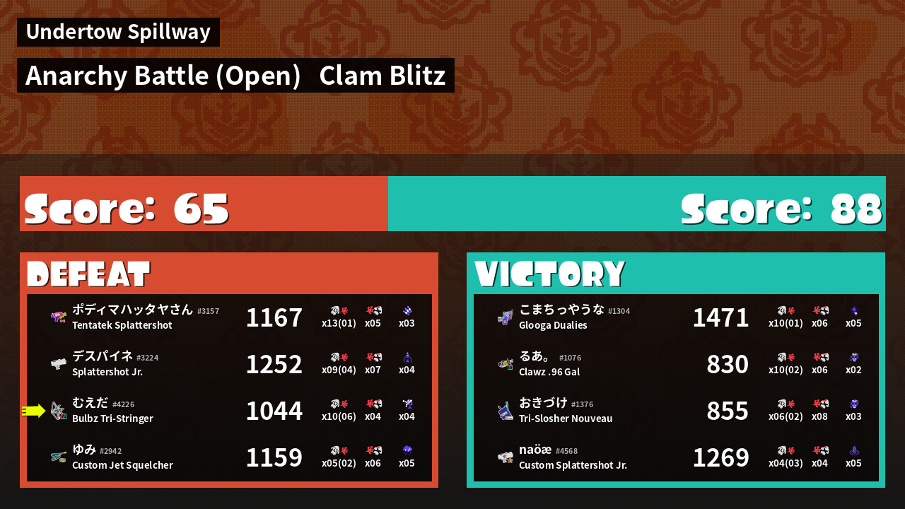 | Mode | Clam Blitz - Anarchy Battle (Open) |