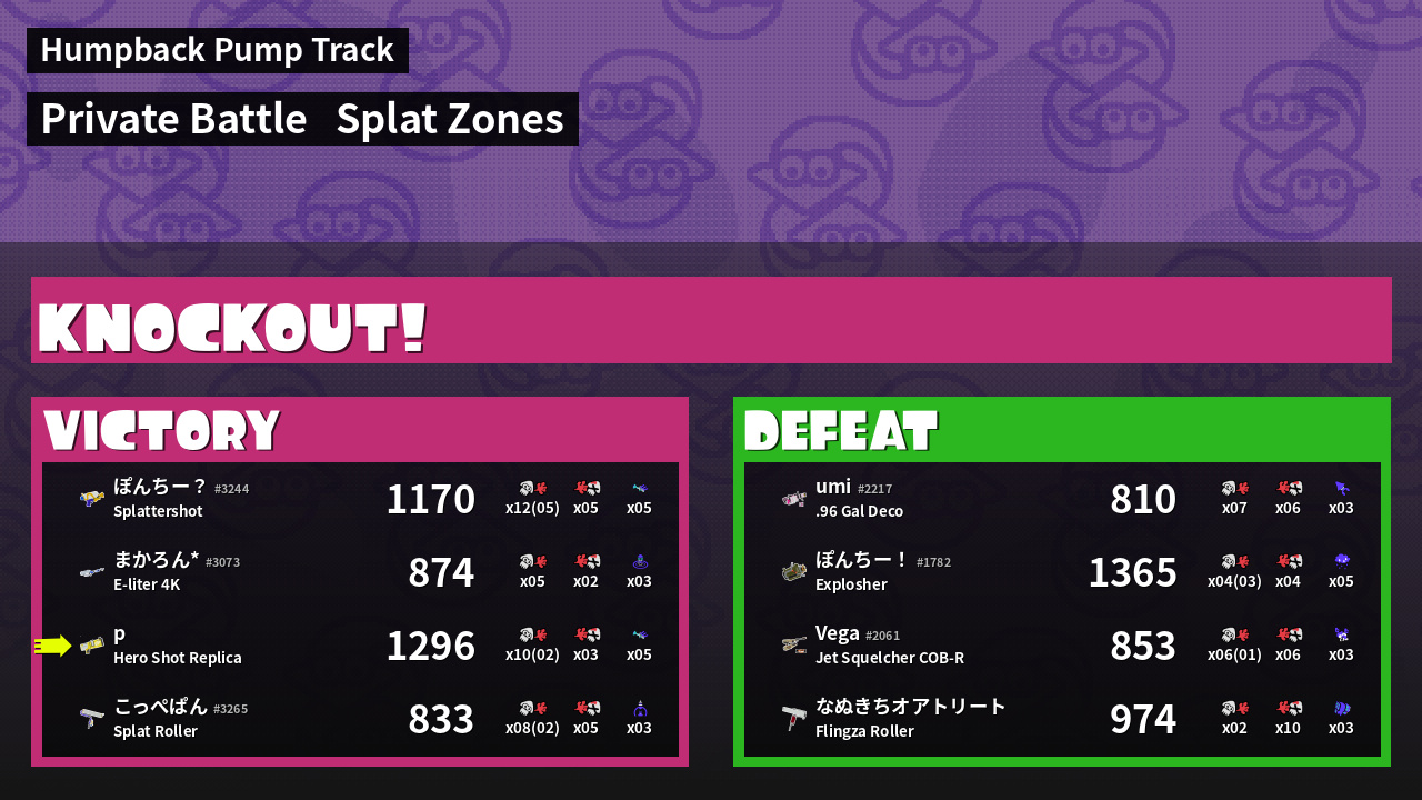 | Medals | #1 Turf Inker #1 Enemy Splatter #1 Damage Taker | ||