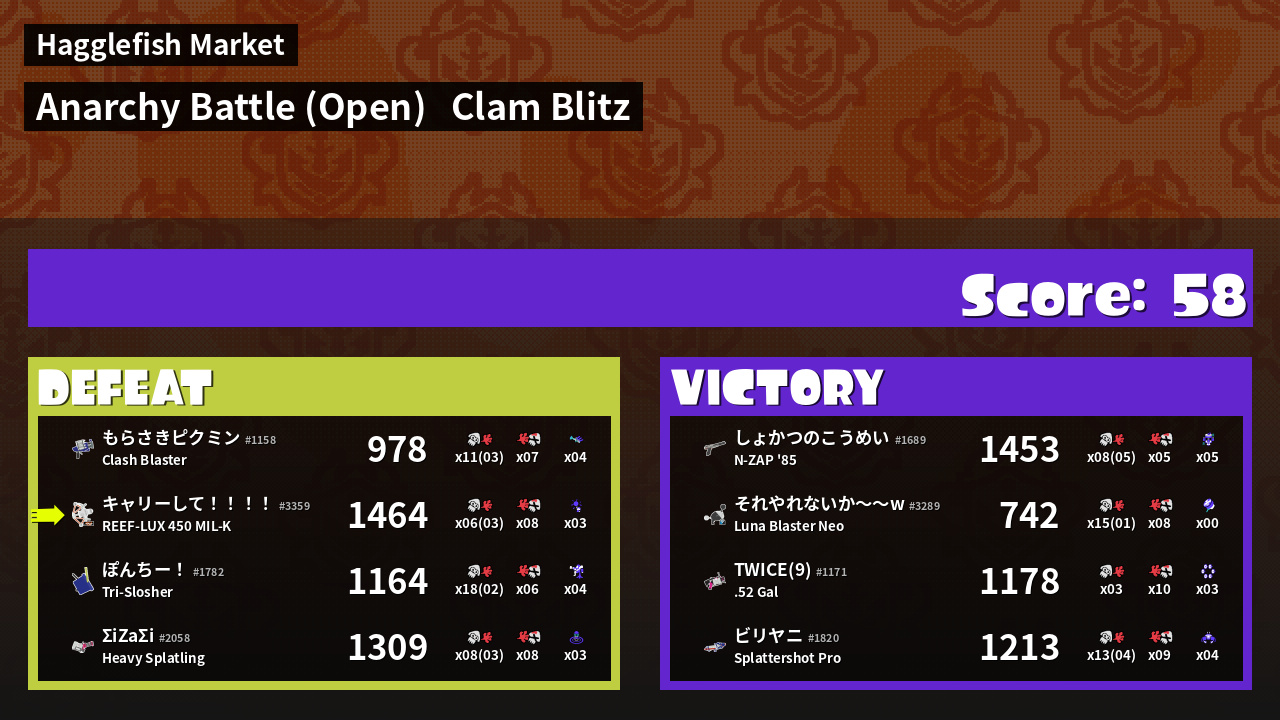 | Mode | Clam Blitz - Anarchy Battle (Open) | ||