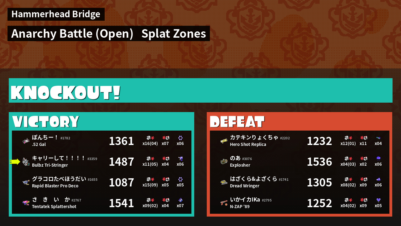 | Mode | Splat Zones - Anarchy Battle (Open) | ||