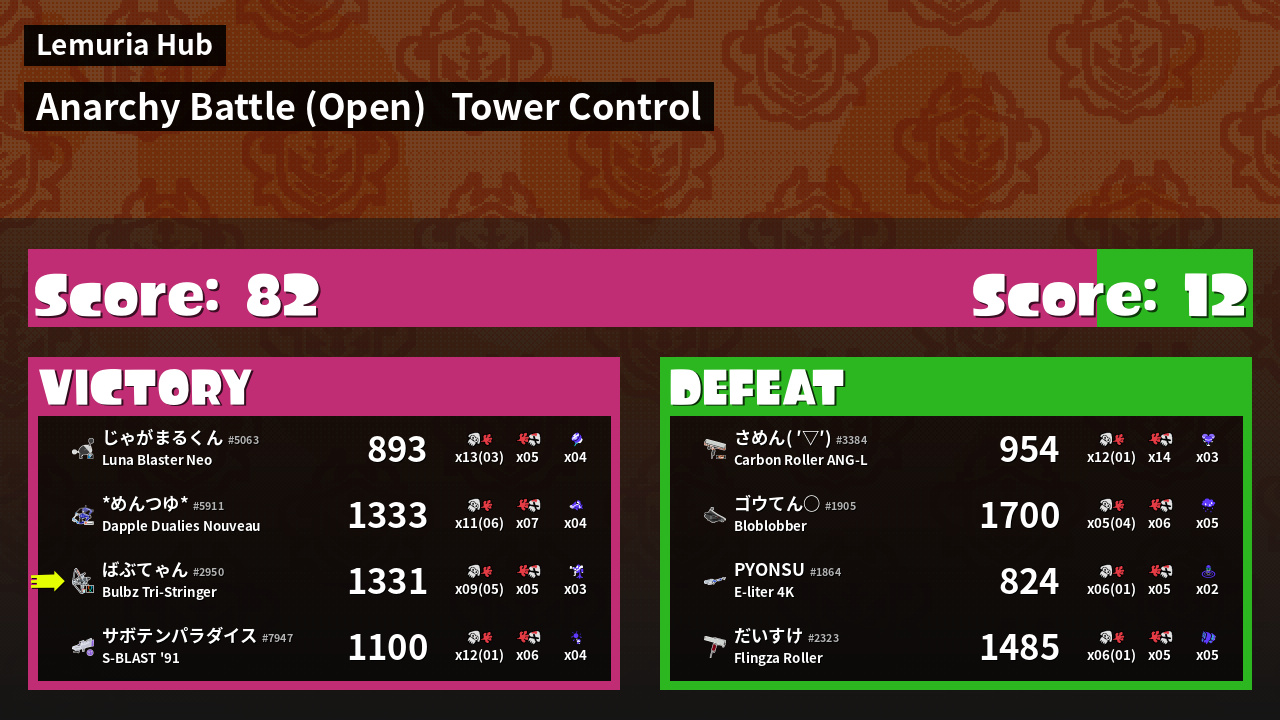 | Mode | Tower Control - Anarchy Battle (Open) | ||
