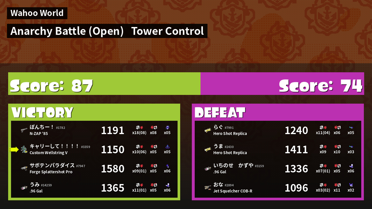 | Mode | Tower Control - Anarchy Battle (Open) | ||