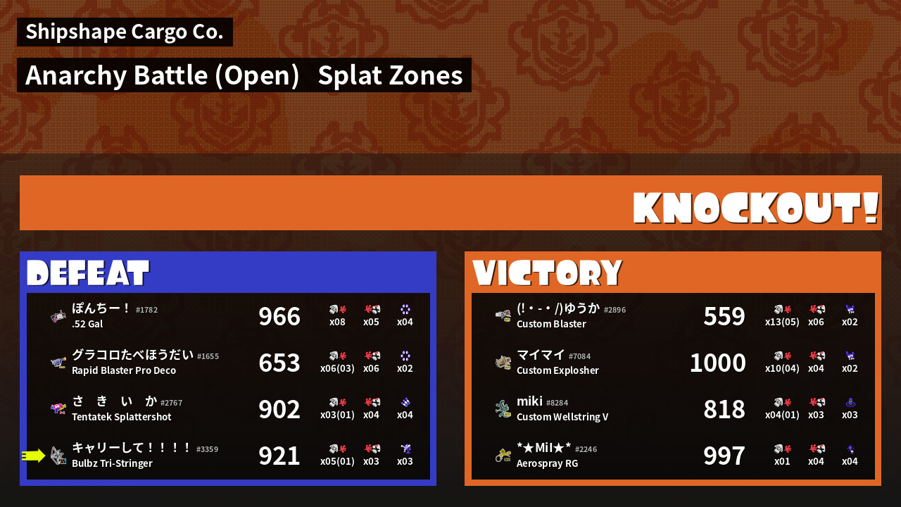 | Mode | Splat Zones - Anarchy Battle (Open) | ||