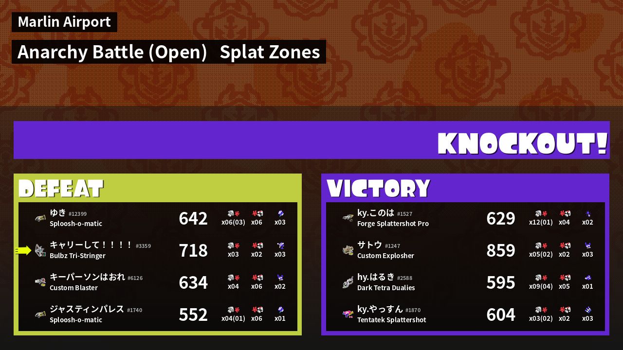 | Mode | Splat Zones - Anarchy Battle (Open) | ||