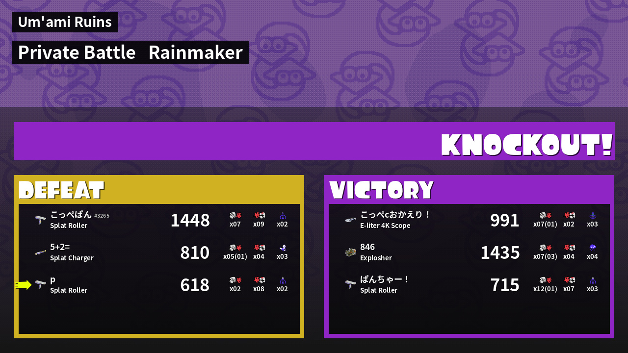 | Weapon | Splat Roller ( Curling Bomb / Big Bubbler) | ||