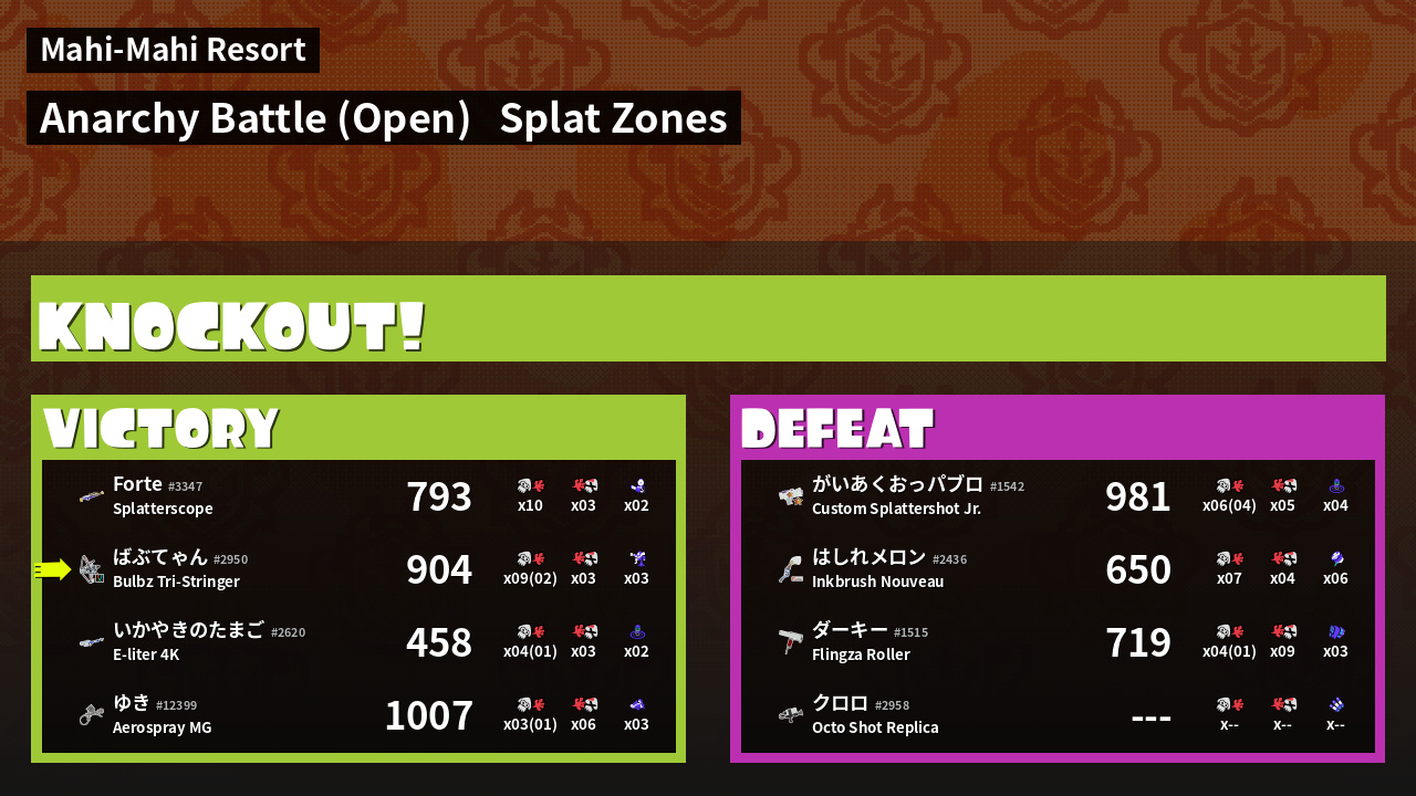 | Mode | Splat Zones - Anarchy Battle (Open) | ||