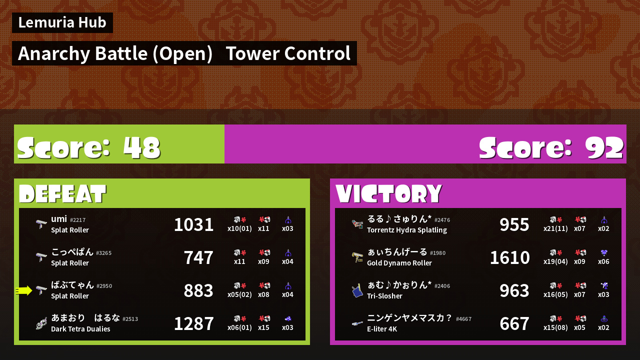 | Mode | Tower Control - Anarchy Battle (Open) | ||
