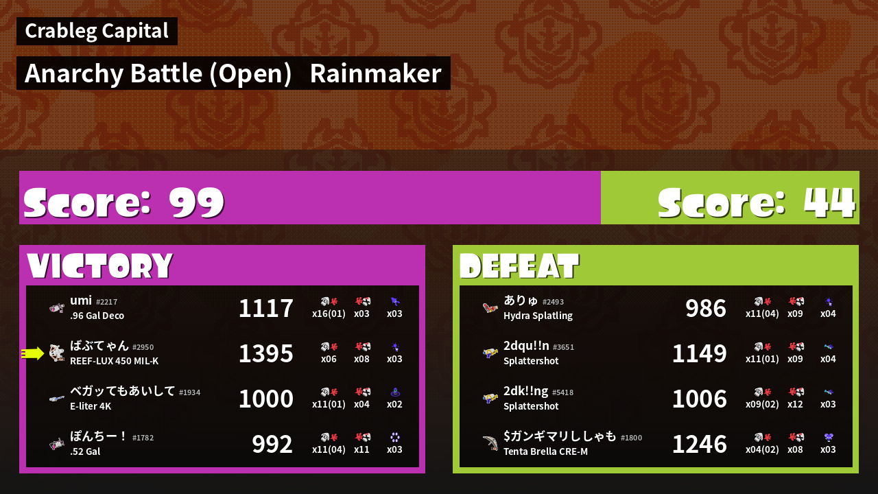 | Mode | Rainmaker - Anarchy Battle (Open) | ||