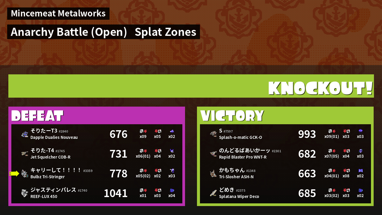 | Mode | Splat Zones - Anarchy Battle (Open) | ||