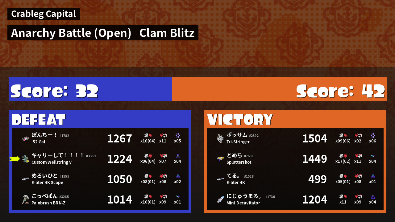| Mode | Clam Blitz - Anarchy Battle (Open) | ||