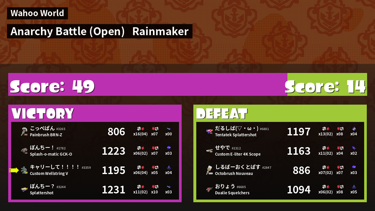 | Mode | Rainmaker - Anarchy Battle (Open) | ||