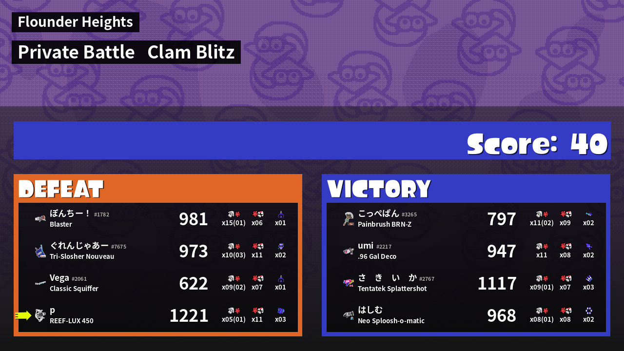 | Medals | #1 Turf Inker #1 Damage Taker #2 Clam Carrier | ||