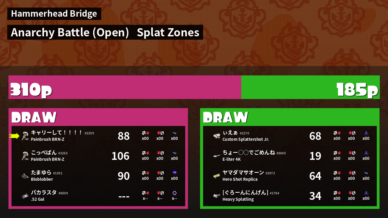 | Mode | Splat Zones - Anarchy Battle (Open) | ||