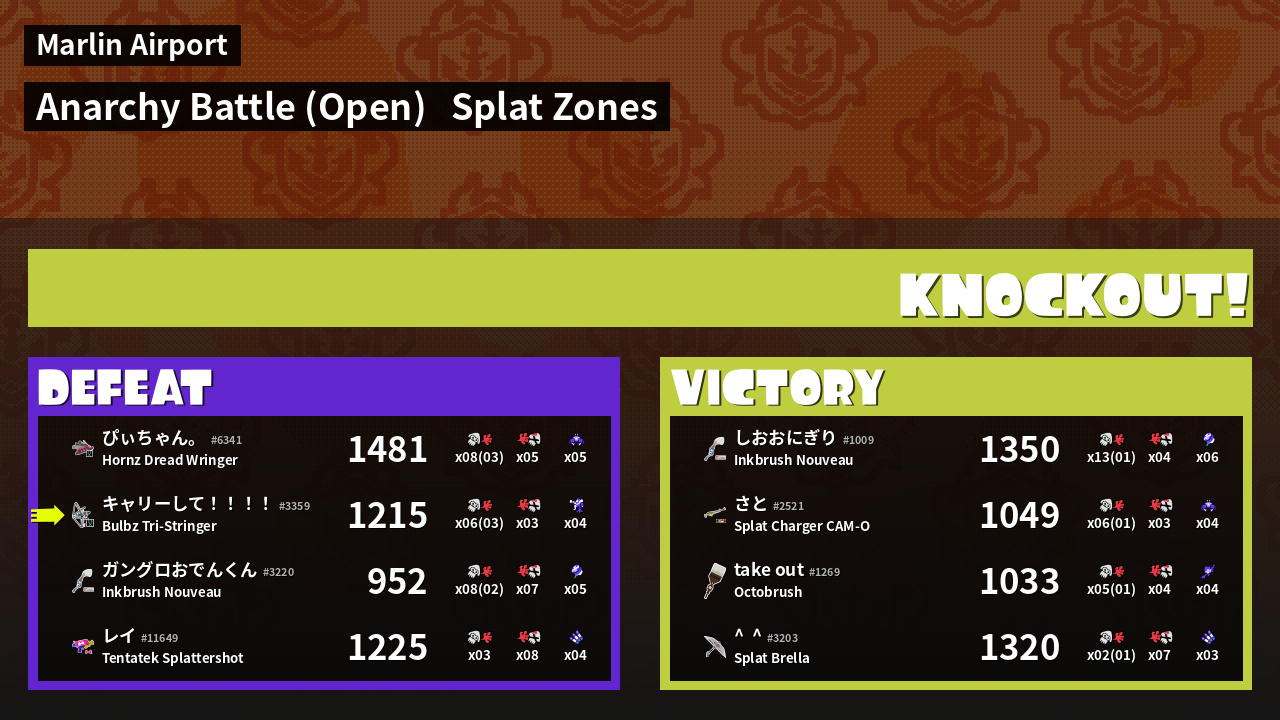 | Mode | Splat Zones - Anarchy Battle (Open) | ||