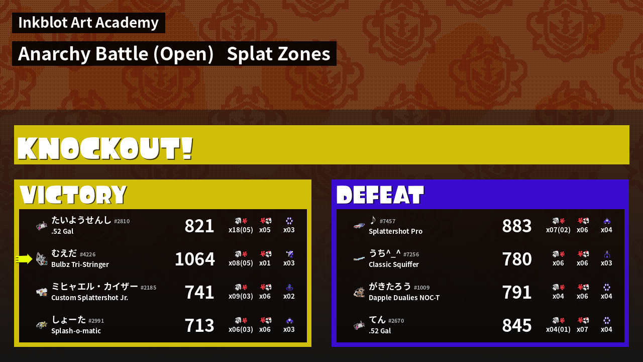 | Mode | Splat Zones - Anarchy Battle (Open) |