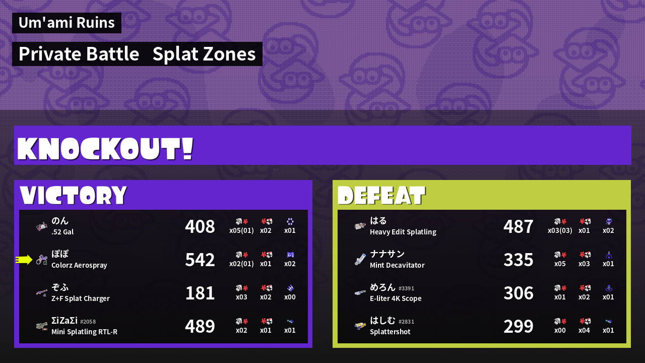 | Mode | Splat Zones - Private Battle | ||