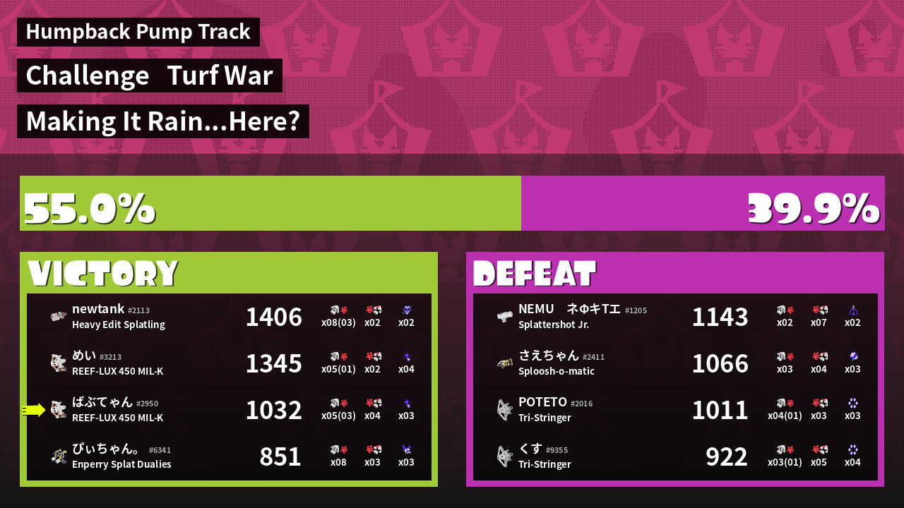 | Medals | #1 Super Jump Spot #1 Splat Assister #1 Base Defender | ||