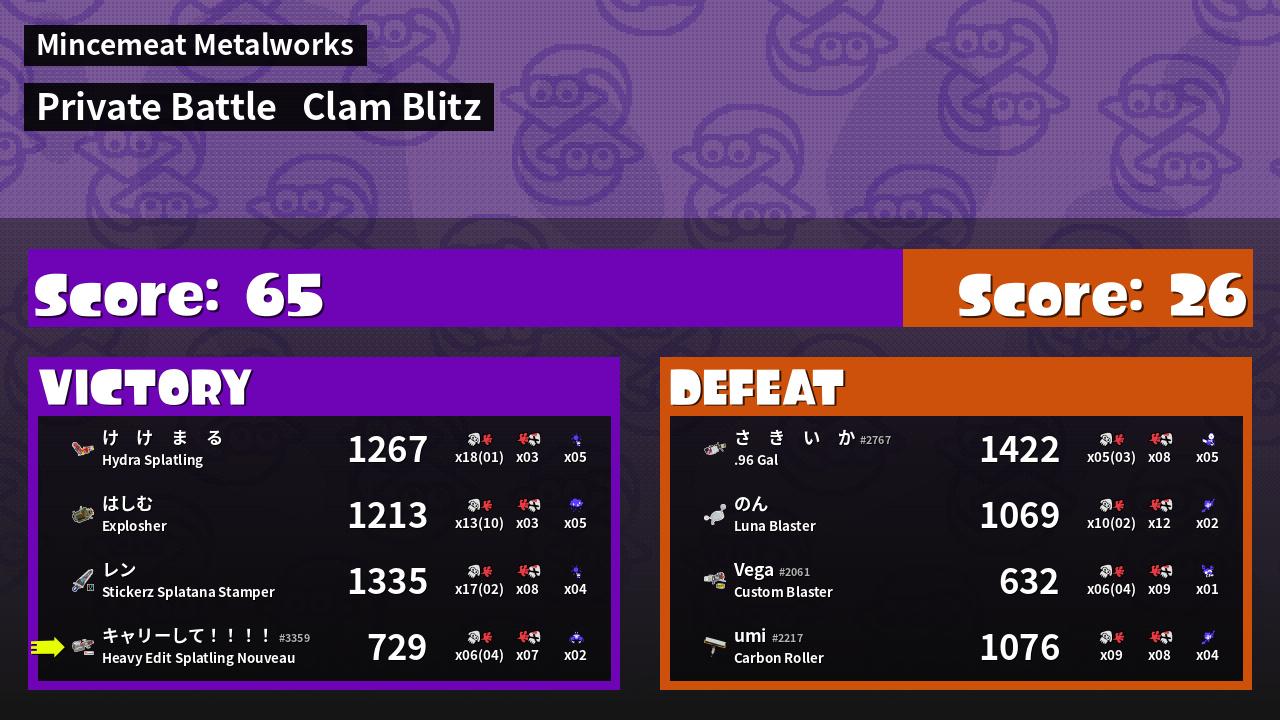 | Mode | Clam Blitz - Private Battle | ||