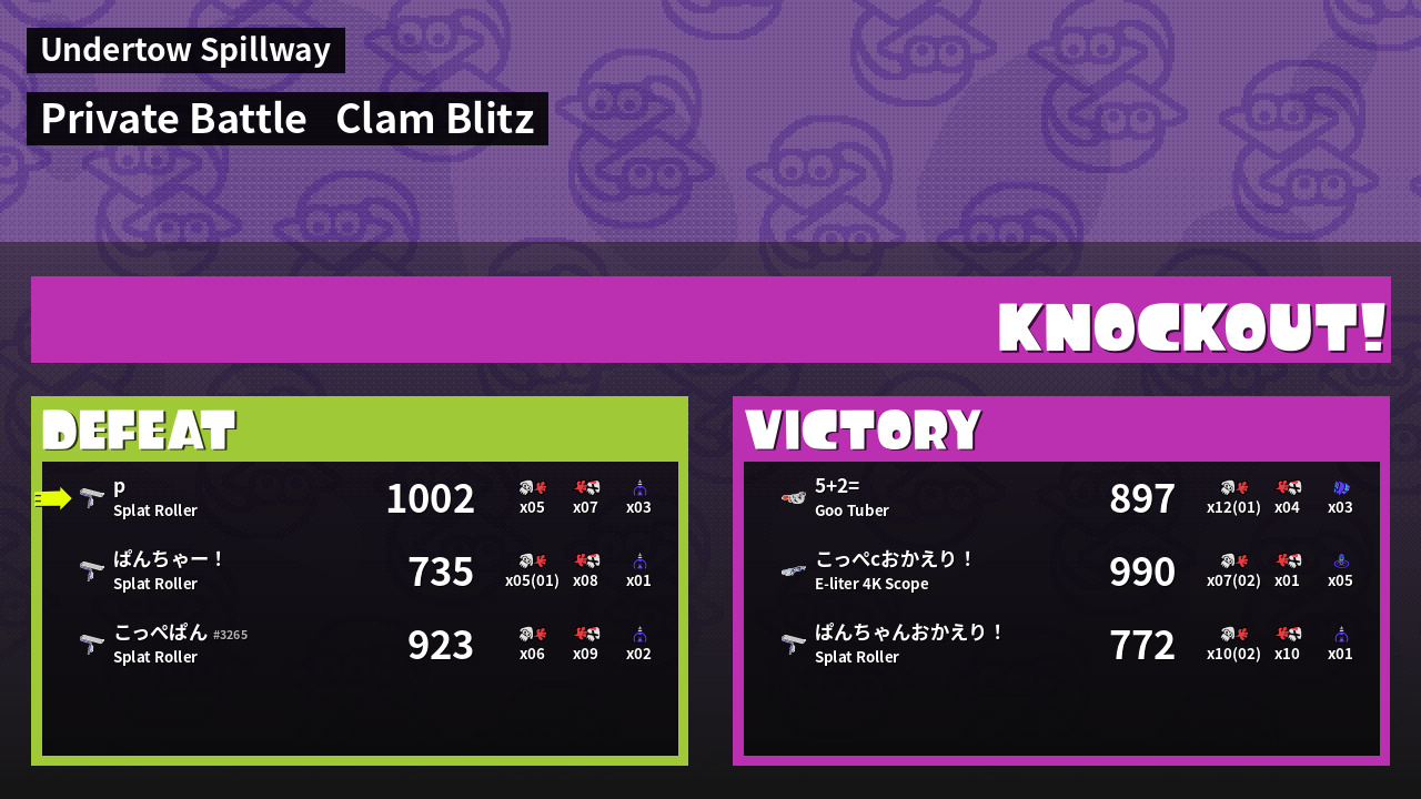 | Mode | Clam Blitz - Private Battle | ||