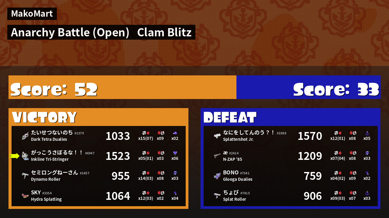 | Mode | Clam Blitz - Anarchy Battle (Open) | ||