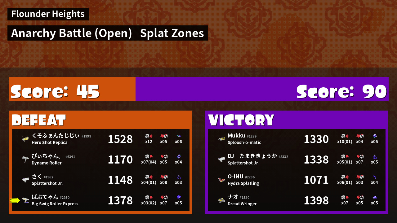 | Mode | Splat Zones - Anarchy Battle (Open) | ||