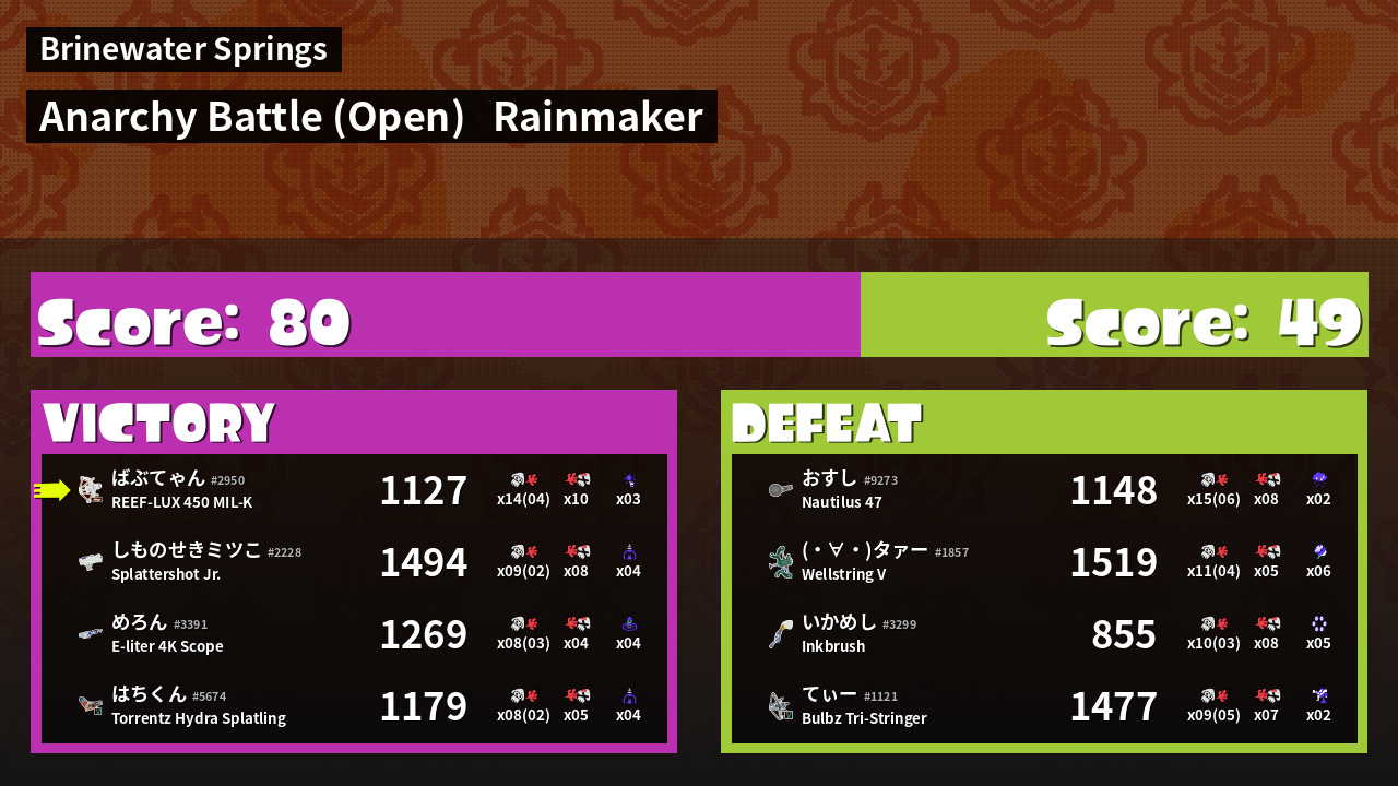 | Mode | Rainmaker - Anarchy Battle (Open) | ||