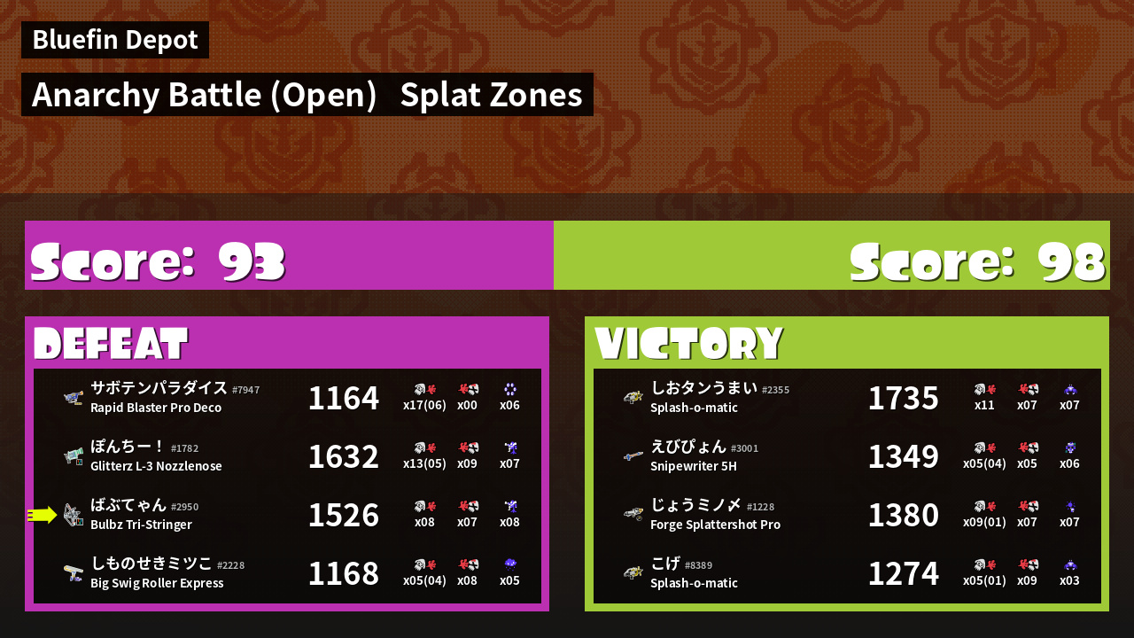 | Mode | Splat Zones - Anarchy Battle (Open) | ||