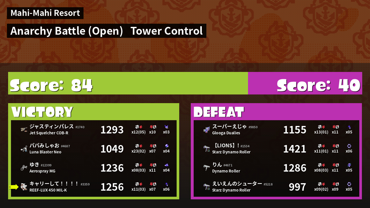 | Mode | Tower Control - Anarchy Battle (Open) | ||
