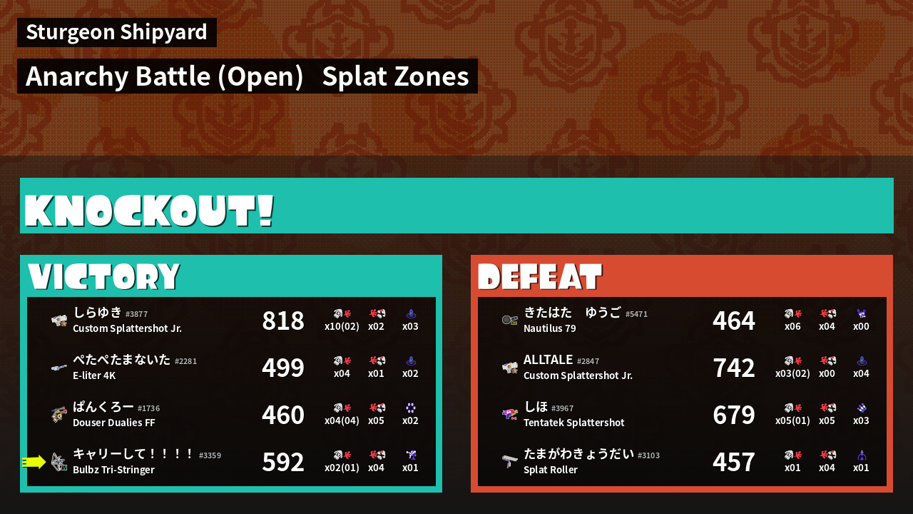| Mode | Splat Zones - Anarchy Battle (Open) | ||