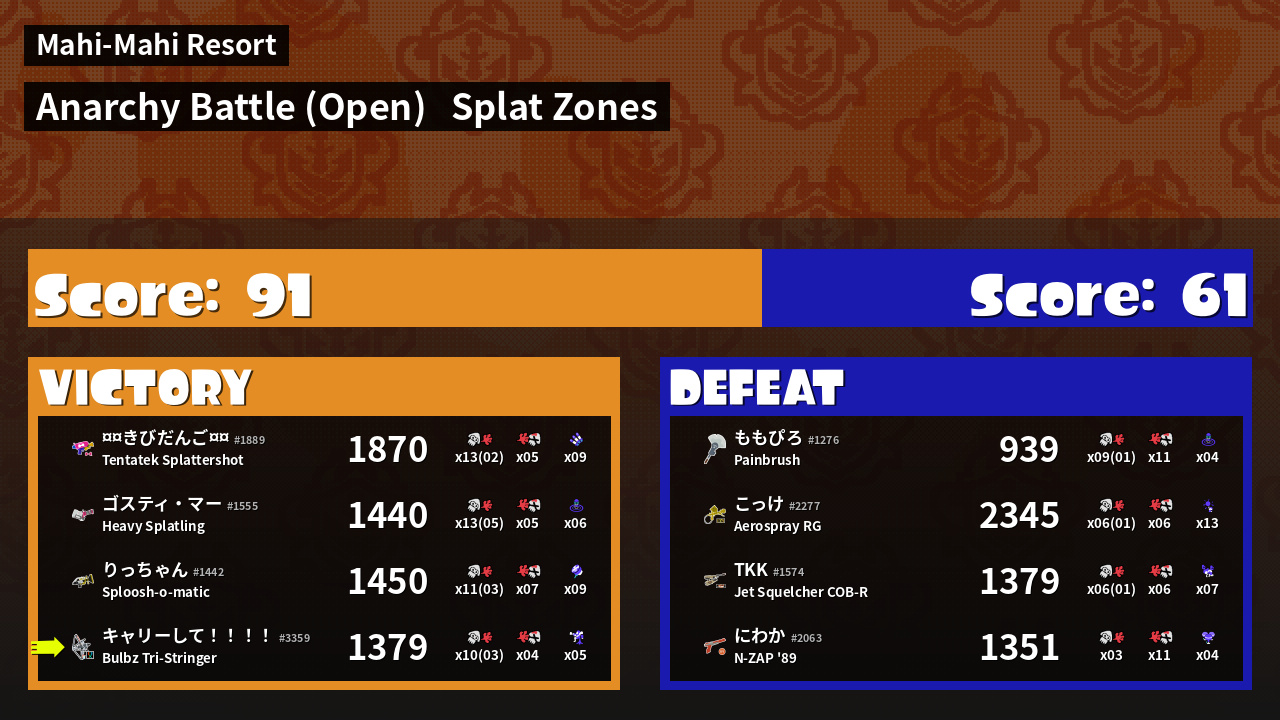 | Mode | Splat Zones - Anarchy Battle (Open) | ||