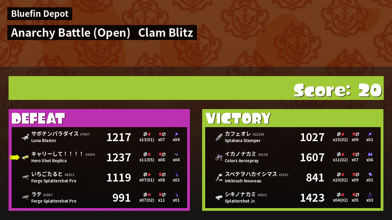 | Mode | Clam Blitz - Anarchy Battle (Open) | ||