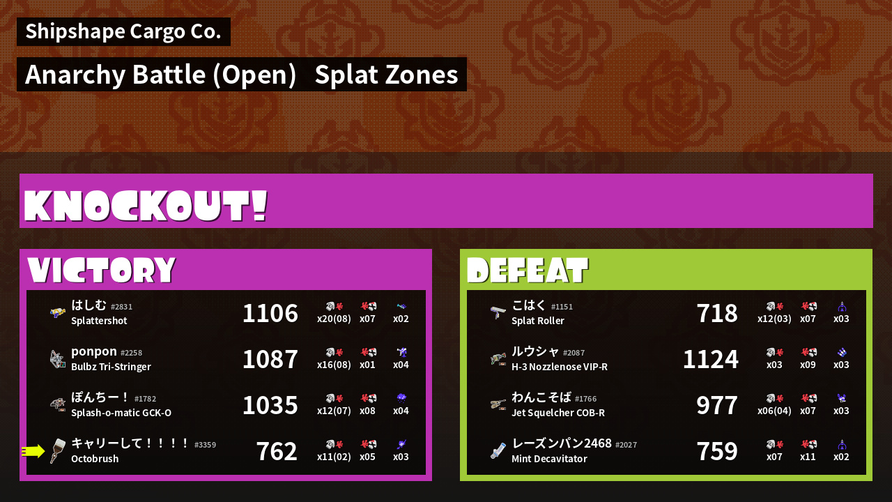 | Mode | Splat Zones - Anarchy Battle (Open) | ||