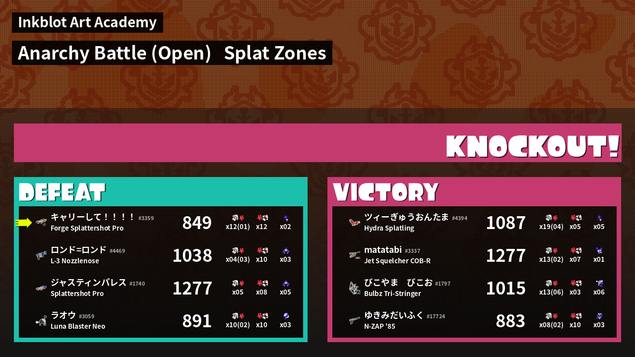 | Mode | Splat Zones - Anarchy Battle (Open) | ||