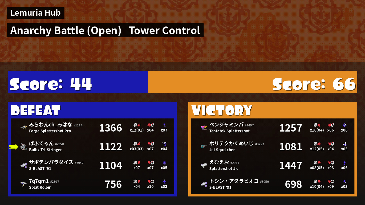 | Mode | Tower Control - Anarchy Battle (Open) | ||