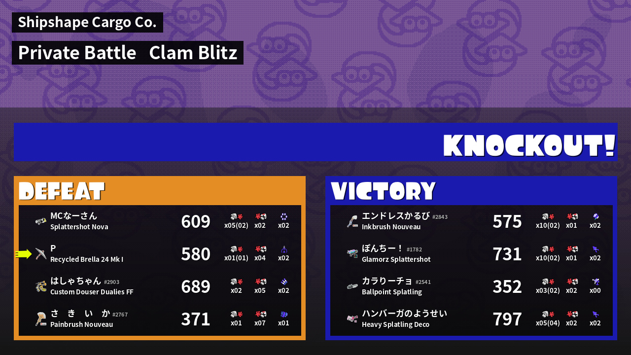 | Mode | Clam Blitz - Private Battle | ||