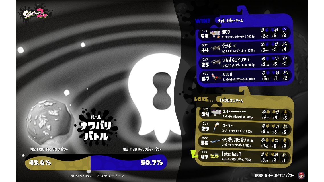 | Splatfest Title | チャンピオン Defender 41 → チャンピオン Defender 43 | |||||||||||||||||||||||||||||||||||||