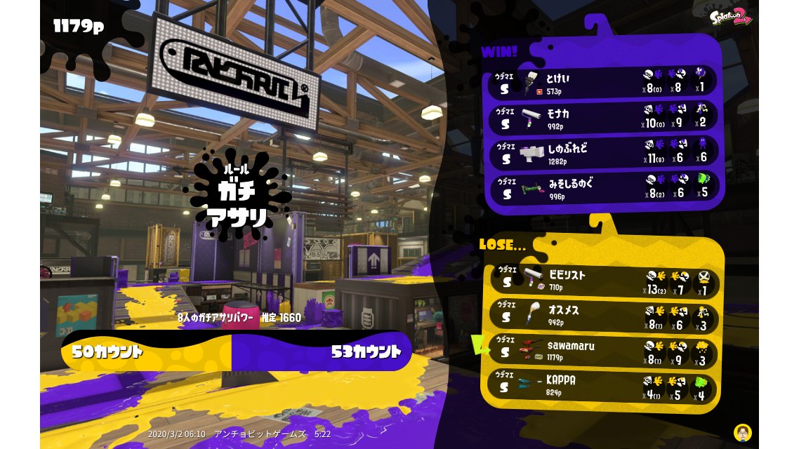 | Name | Weapon | Level | Rank | Inked | k+a/sp | k/d |