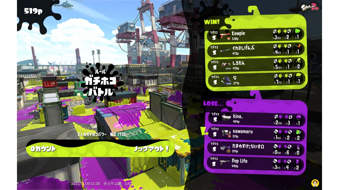 | Name | Weapon | Level | Rank | Inked | k+a/sp | k/d |